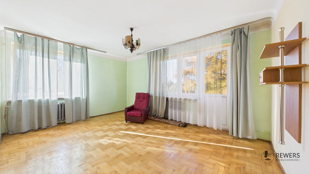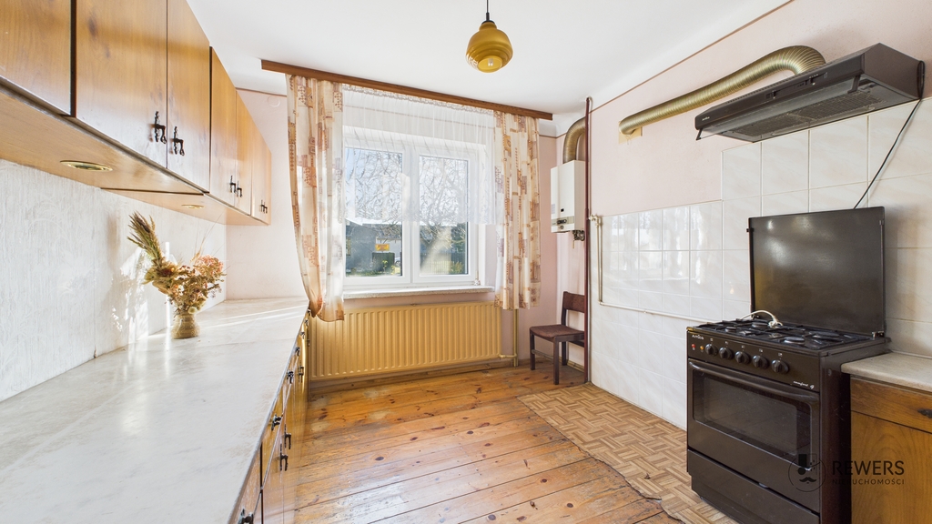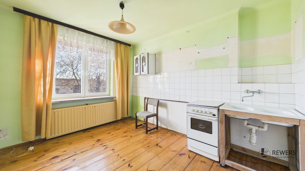 Budynek jest przeznaczony do remontu, co daje nowemu właścicielowi pełną swobodę aranżacji wnętrz. Składa się z parteru, piętra oraz strychu z możliwością adaptacji na dodatkowe pokoje. Dom jest również w całości podpiwniczony, gdzie znajduje się kotłownia.