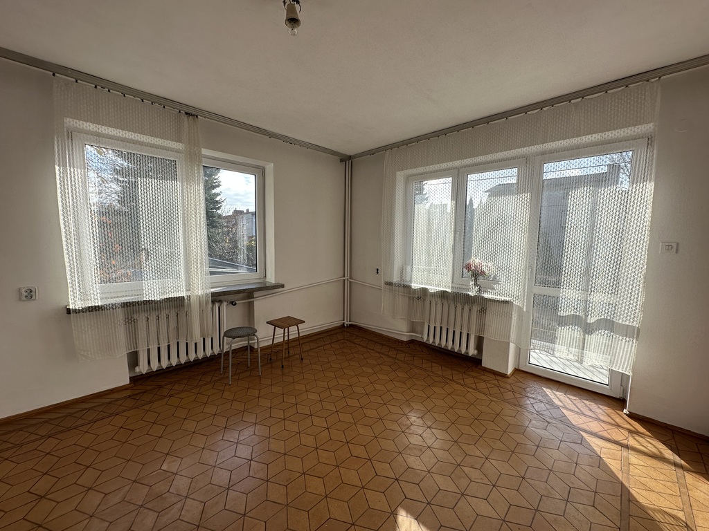 Nieruchomość jest w bardzo dobrym stanie konstrukcyjnym, choć wnętrza wymagają remontu i adaptacji, co daje nowemu właścicielowi pełną swobodę w dostosowaniu przestrzeni pod konkretny cel inwestycyjny. Budynek jest podłączony do wszystkich mediów miejskich, a ogrzewanie zapewnia wydajny piec gazowy. Do dyspozycji są również piwnica, kotłownia oraz spiżarnia.