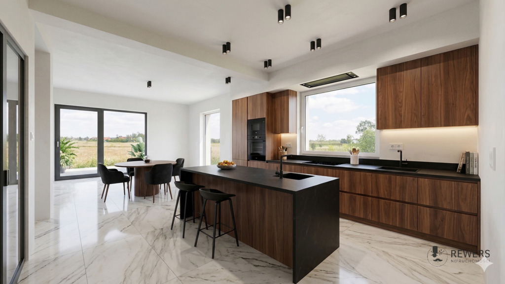 - Nowoczesne technologie – pompa ciepła, rekuperacja, instalacja pod montaż klimatyzacji, trzyszybowe okna.