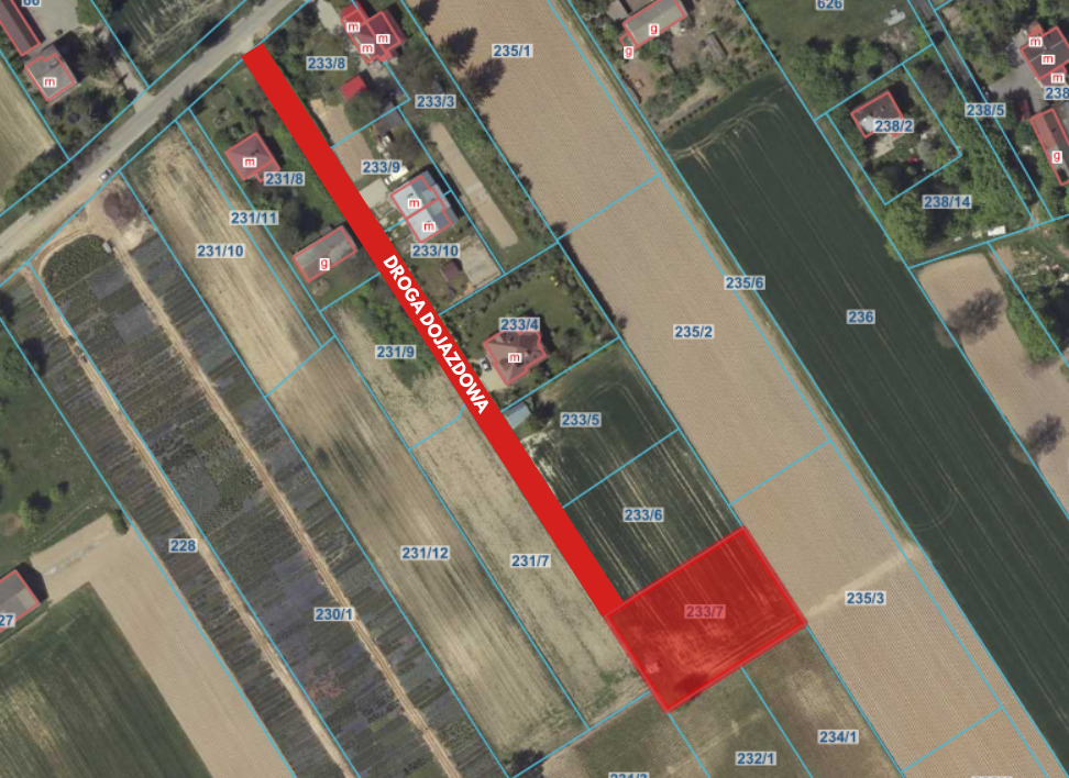 - Dojazd: Bezpośredni dojazd utwardzoną drogą wewnętrzną.