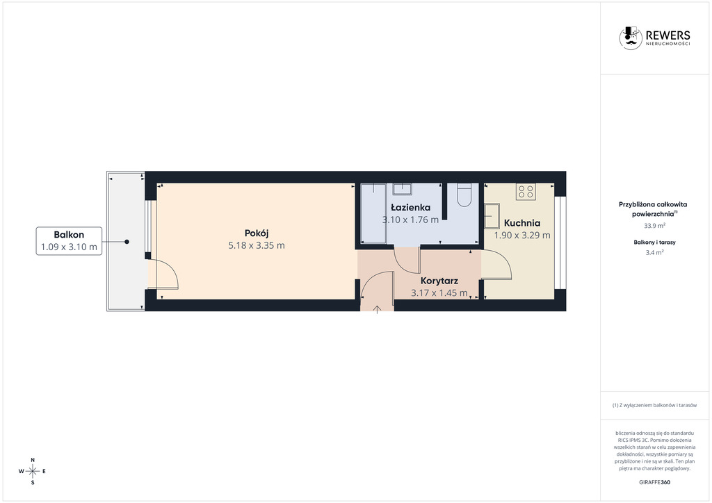 Kluczowe informacje:- Powierzchnia: 34,3 m²,