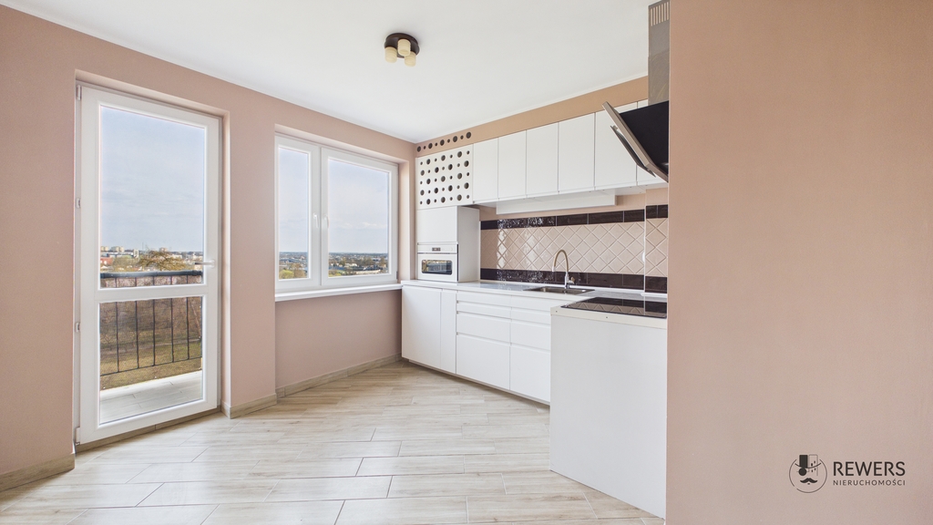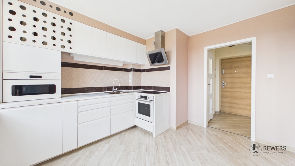 Ponadto w mieszkaniu znajduje się wyposażony aneks kuchenny, a także wyremontowana została łazienka.