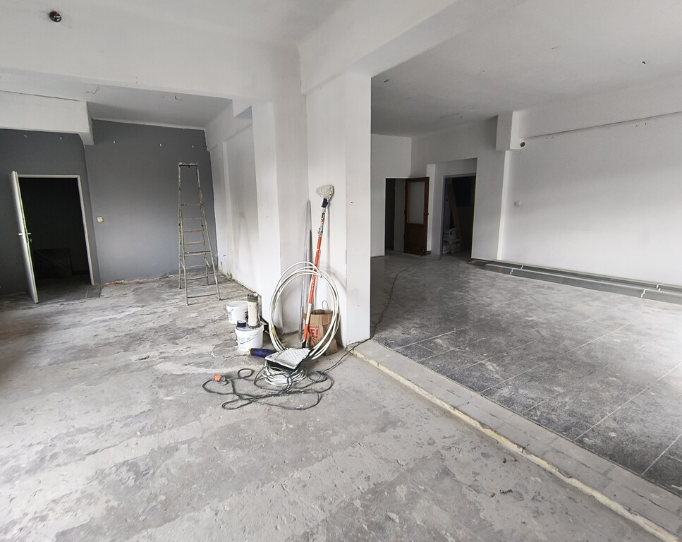 Mieści się na parterze w budynku 2 piętrowym i składa się z dużej sali, którą można podzielić na dwa pomieszczenia po ok 40-50m2.