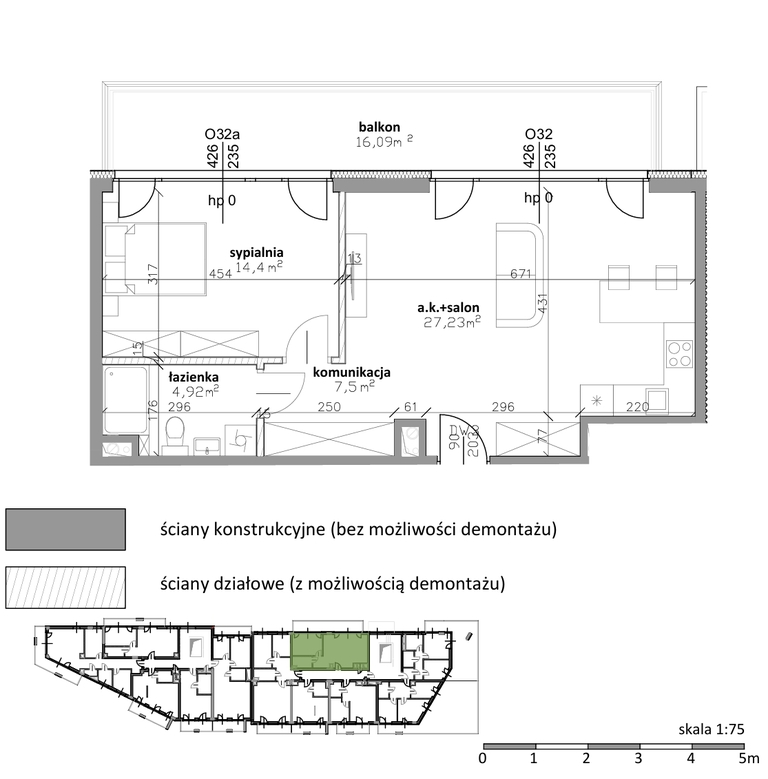 - komunikacja 7,5 m2