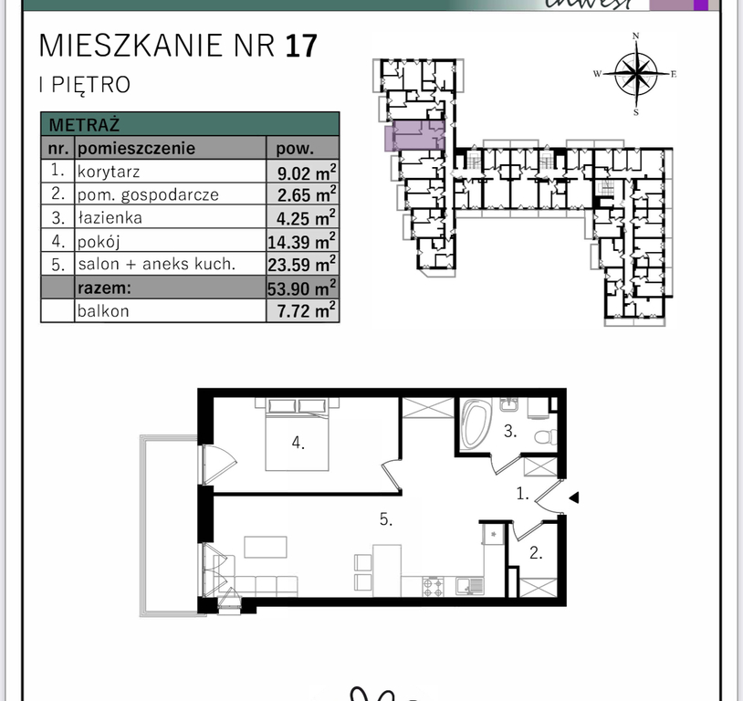 Pozostałe w tym samym pionie na p. II i III posiadają balkon o powierzchni 7,72 m2