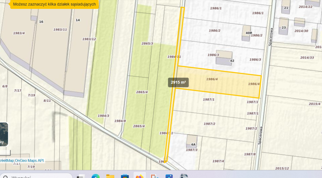II. Uwarunkowania Formalne – Pewność Inwestycji - Status Prawny: Pełna własność, bez obciążeń. Nieruchomość jest w trakcie wydzielania geodezyjnego z większych działek nr 1984/10 i 1984/11, z możliwością rezerwacji konkretnej, foremnej parceli.
